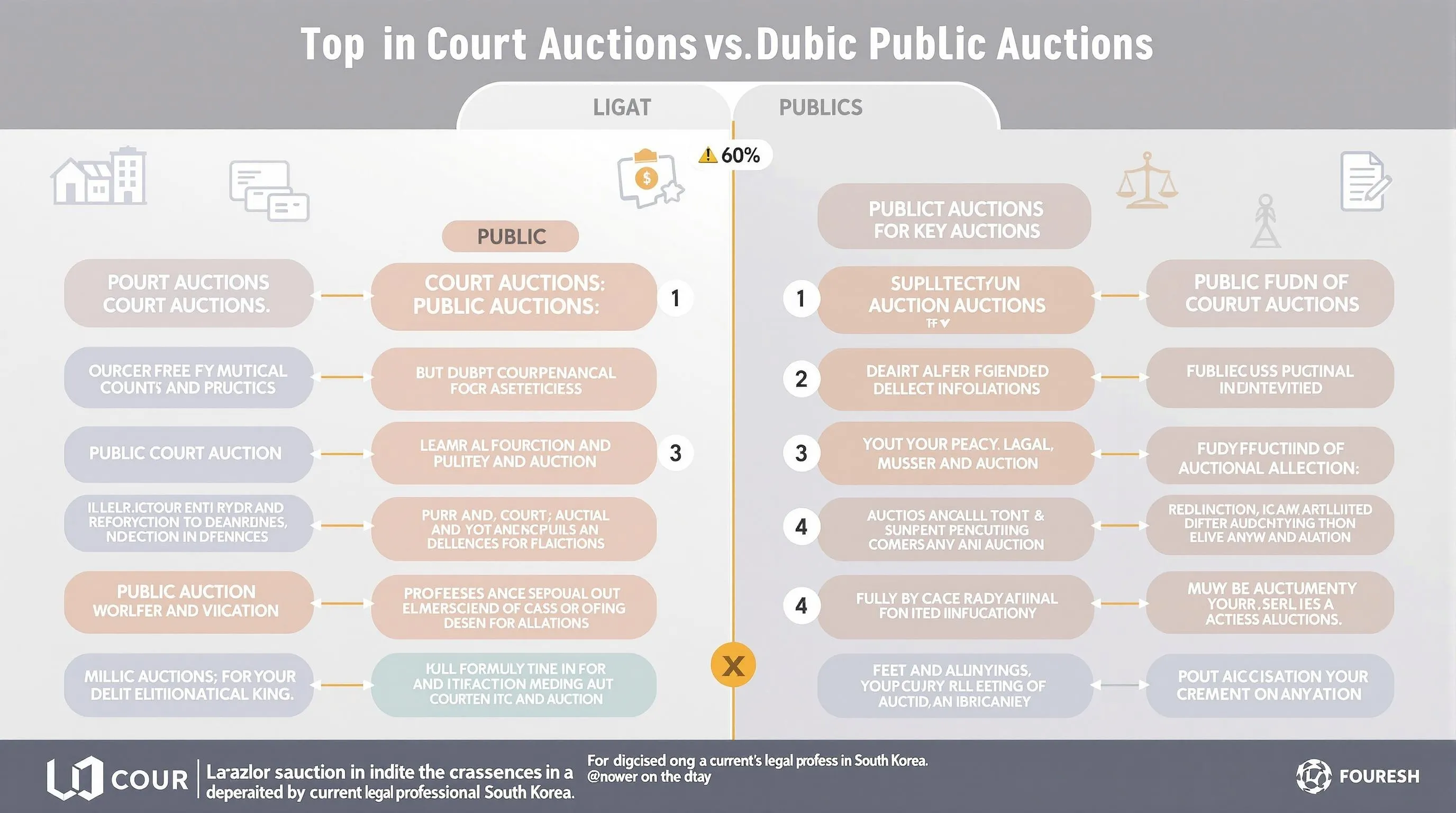 법원 경매와 공매는 각각의 특징과 장단점을 가진 부동산 투자 방식입니다. 법원 경매는 엄격하고 투명한 절차가 장점이며, 공매는 유연성과 다양한 물건이 장점입니다. 투자자의 목적과 상황에 따라 적절한 선택이 필요합니다. 성공적인 투자를 위해서는 두 제도의 특징을 정확히 이해하고 준비하는 것이 핵심입니다.